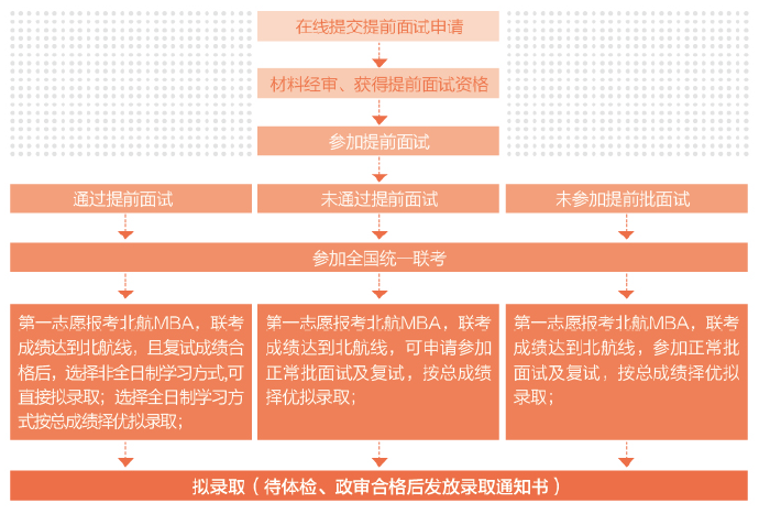 未通过考生:第一志愿报考北航MBA,联考成绩达到北航线,可申请参加正常批面试。