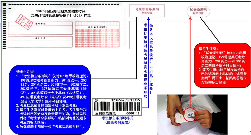 【转自北航研究生招生信息网】2018年全国硕士研究生招生考试北航考点关于条形码的说明示意图
