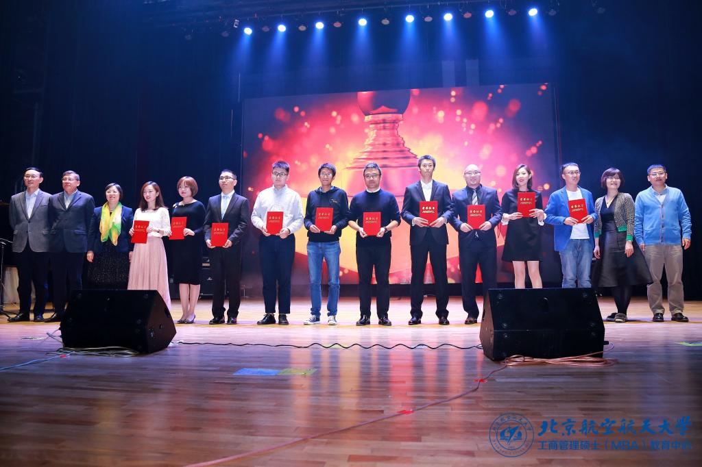 传承北航MBA精神,载誉前行,北航MBA20周年庆典之际对优秀在校生及团队进行了表彰。由北航经管学院院长范英、党委书记刘志新、副院长秦中峰、研究生指导主任单伟、MBA中心主任田东文一同为北航MBA最佳组织奖—“创乐盟”筹备团队,北航MBA优秀团队奖—案例大赛团队,北航MBA优秀团队奖—招生大使团队,北京亚洲成人在线一二三四五六区MBA最佳贡献奖-于浩龙同学,北航MBA最佳体育团队奖—亚沙团队、草原王团队、足球队、篮球队,北航MBA卓越团队奖—2017级迎新晚会筹备团队、MBA20周年庆暨18级迎新晚会筹备团队颁发证书。