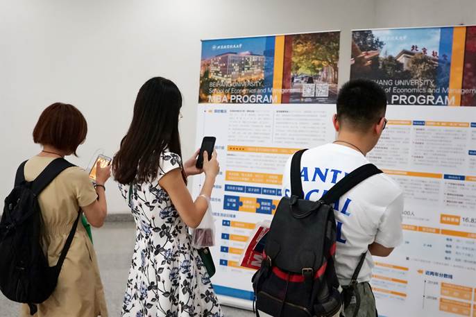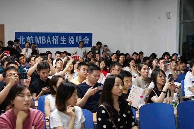 2019年6月15日18:30,2020年入学北京亚洲成人在线一二三四五六区工商管理硕士(MBA)第二场招生说明会在北航新主楼B座101教室举办。出席本次活动的有2016级校友/中国联通集团互联网项目经理车涵凝、招生老师、招生大使、130位备考考生。