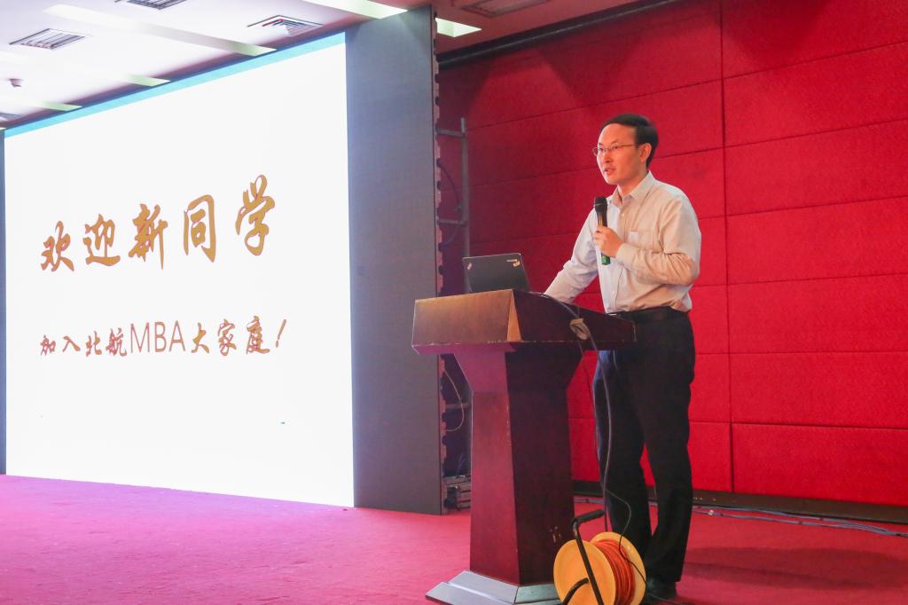 随后,新生代表吕鹏先代表全体新生发表了入学感言,在校生张骁表达了在北航一年多的校园生活,北航MBA教育中心主任田东文对新生入学导向活动进行了详细介绍。