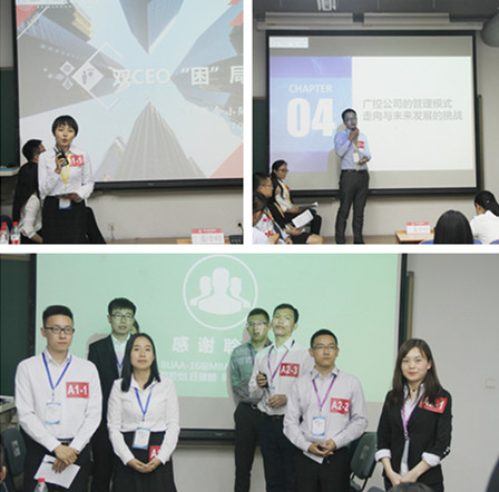下午17:30比赛正式开始。本次比赛共吸引了8支队伍参加,其中2016级有4支参赛队伍,另外4支参赛队伍则来自即将入学的2017级MBA。比赛案例为“双CEO困局:如何建立合理的管理模式”,比赛设置同年级组参赛队伍之间进行PK,每轮比赛由两支队伍上台展示,共分为三个环节,第一个环节为台上两支参赛队分别进行PPT陈述及双方互相提问;第二个环节为台下观众提问,第三个环节为评委提问及点评。