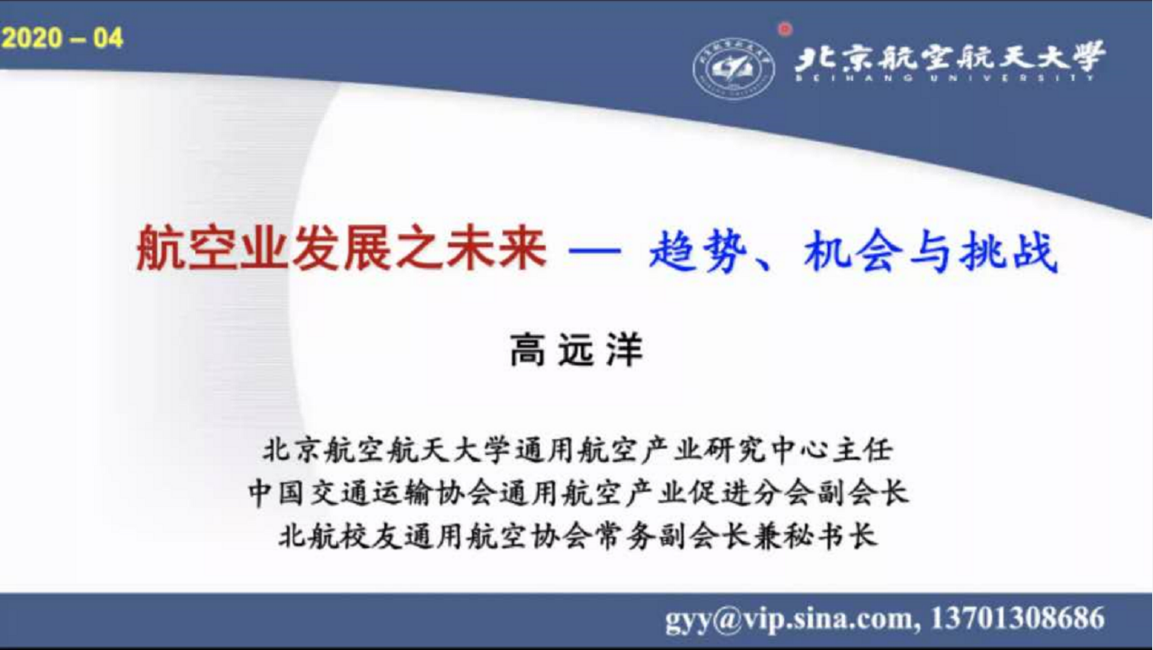 2020年4月17日3月20日,北航MBA教育中心举办线上知行论坛讲座,邀请北京亚洲成人在线一二三四五六区经济管理学院高远洋副教授为北航MBA学子带来专题讲座《航空业发展之未来——趋势、机会与挑战》。