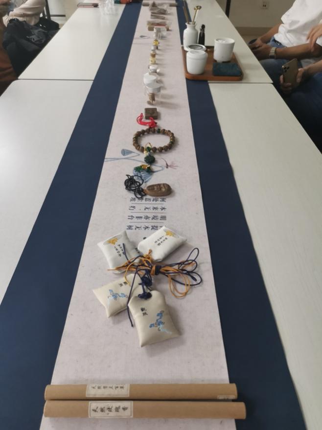 活动最后,刘老师与同学们一起探讨了品香艺术与现代生活的联系。她指出,现代生活中人们往往苦于生活压力,无法静下心去沉淀思考,而在闲暇时独自一人或三五同好一起,盘坐案前,安静地品香、品茗,对心灵放松清净、开启智慧,有着意想不到的效果。