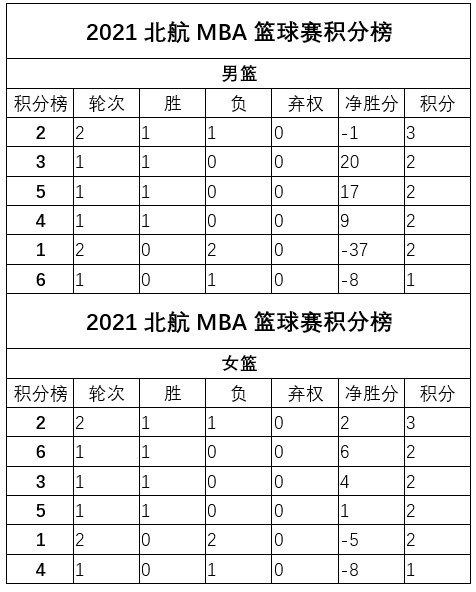 “佳得乐”杯北航MBA篮球赛赛程