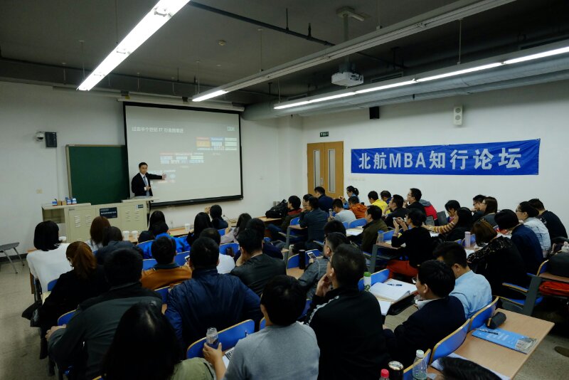 2017年4月8日,和风送暖,百花绽放,北航MBA知行论坛携手IBM公司副总裁、金融行业总经理郭仁声先生为同学们安排了一场题为《风雨百年行,转型新 为要》的精彩讲座。