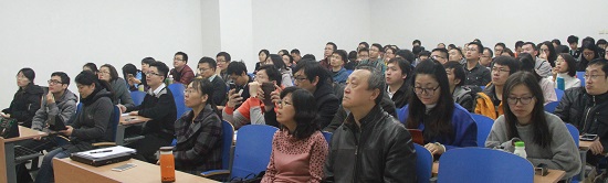 为庆贺北航经管学院建院60周年,MBA中心特意组织了一系列高质量的知行论坛讲座活动。11月5日晚,MBA中心同时举办了两场精彩的活动,讲座现场均是学子云集,座无虚席。金融行业系列讲座“衍生品市场机遇和挑战”由张惠岩先生在新主楼A212开讲。经管学院韩立岩教授、李平教授等出席活动,并对其在行业领域内的研究成果作出高度评价。