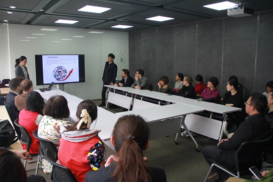 走进致真大厦21层,同学们就被走廊里一整排的动态演示墙所吸引。在演示墙前,慧科教育副总裁杜海震女士用活泼而流畅的英文,为同学们介绍慧科教育集团的发展历程。结合着动画与讲解,同学们的理解更为直观,也埋下了许多深思,留在随后的研讨会中深入探讨。