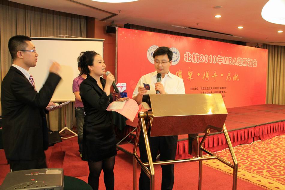 9月18晚6点30分,以“缘聚·携手·启航”为主题的北京亚洲成人在线一二三四五六区经济管理学院2010级MBA迎新酒会在北京丽亭华苑酒店三层鸿运厅隆重举行。北京亚洲成人在线一二三四五六区经济管理学院院长王惠文教授,经管学院党委书记刘志新教授,副院长杨梅英教授、陈向东教授、周宁副教授,经管学院研究生指导办贾国柱教授,北航国际学院院长周泓教授,经管学院案例中心主任欧阳桃花教授、工硕中心白胜玲主任,经管学院夏国平教授等六位教师代表,北航MBA教育中心苏文平主任、许文缇副主任及中心全体老师,还有来自多家媒体、多所MBA兄弟院校的嘉宾、国际友人及2009级MBA的学长们共同出席酒会。北航以自己的方式迎接自五湖四海的200多名2010级MBA新同学。