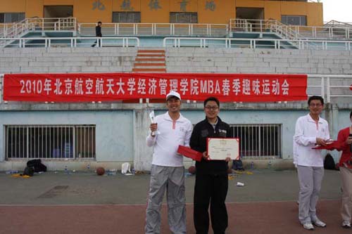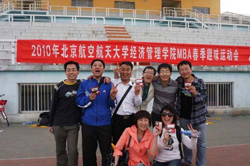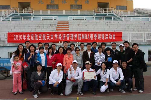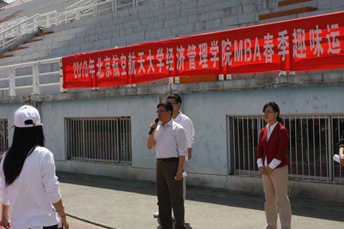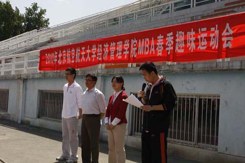 2010年5月9日下午,北航经管学院研究生指导办组织了一场别开生面的运动会,即北航MBA第一届趣味运动会,研究生指导办贾国柱主任、栾志超指导员和学生工作办公室牟晖主任出席了此次运动会,贾主任在开幕式上致开幕辞。运动会由北航MBA联合会承办,并邀请了09级普研的同学共同参加。