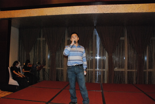 后弈忙射日,嫦娥偷奔月,月老不曾老,自古情难了,爱情是古往今来永恒的主题。09083班的牟小菲同学首先为大家带来了一段诠释爱情的热舞。在激情四射的舞蹈之后,08级同学陈锋明,为大家演唱了一首缠绵的情歌《十年》。