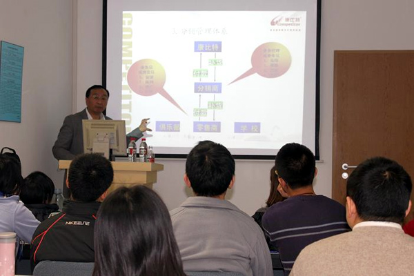 论坛在白总亲切的问候和幽默的言辞中拉开帷幕,MBA中心的张老师也代表中心全程参加了讲座。或许是受到了来自经管学院MBA专业和其他学院的几十位同学们的热情目光的感染,白总的课讲得精彩纷呈,同学们听的也是酣畅淋漓。从最初从国家队营养配给起步到今天的全民市场的开拓,从生化指标的摸索到运动营养食品国家和行业标准的率先制定,从一个小企业在困境中的奋斗到今天筹备上市公司的气度——一个个披荆斩棘、催人奋进的故事在白总的口中娓娓道来,为大家勾勒了一幅无比精彩的画卷,令大家在拍手叫好的同时深受启迪。