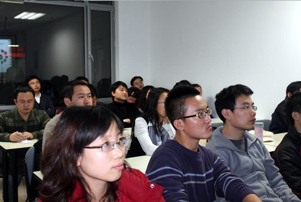 不知不觉间,时钟已经指到了晚上8:30分,是论坛该结束的时间了,可同学们却还显然有点意犹未尽,于是,论坛结束后的提问和跟白总的台下交流又掀起了一个小高潮,在一阵热闹祥和的交流结束以后,张老师代表中心所有老师对白总的到来表示了衷心的感谢和期待进一步合作的希望,论坛在大家不舍的留恋和期待的目光中落下帷幕。