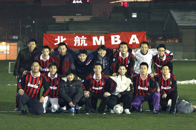 伴着2009年北京的冬雪初临,北京亚洲成人在线一二三四五六区MBA足球队于 11月7日—11月22日,应邀参加了由中国MBA北京联盟主办的第四届联盟杯京津地区MBA足球联赛。比赛中,他们克服重重困难,与其他院校的MBA足球队共赛球艺。经过角逐,他们虽未能从小组赛中顺利晋级,但无论是在凛冽的寒风下驰骋于赛场上的足球队员,还是矗立在风雪中呐喊助威的啦啦队,无疑让在场的所有人感受到团结的力量和相互关爱的温暖。冰天雪地里,因为他们的顽强和坚定,也因为他们的激情和坚持,他们手牵着手,用行胜于言的具体行动诠释着最具团队精神的北航MBA。