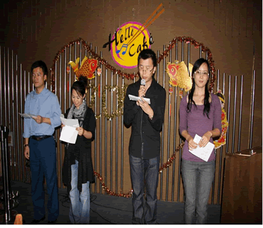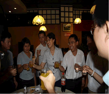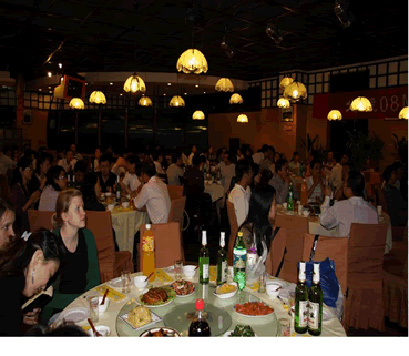 会后,参加此次开学典礼的院领导、MBA中心老师、各兄弟院校及相关新闻媒体记者,于北航合一楼四层荷园大厅参加了北航2008届迎新酒会。刚从国外开会回来的北航经济管理学院研究生教学副院长杨梅英教授心系大家,刚下飞机就风尘仆仆赶来参加迎新酒会,会上杨院长发表了热情洋溢的主题演讲,对新生寄予了希望。其后2008级MBA新生与在校生共同上演了精彩纷呈的节目。在“北京欢迎你”合唱声中将迎新酒会推向了高潮。