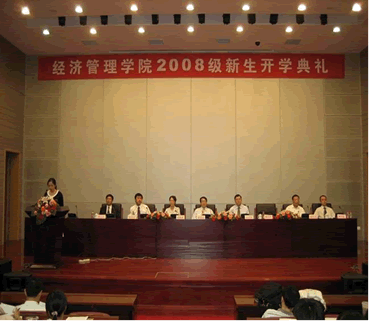 北航经济管理学院研究生指导办主任贾国柱教授主持会议,大会首先在嘹亮的国歌声中拉开帷幕,新生代表SY08083班孔雯同学、在校生代表SY07081班李博同学先后做了发言。北航教师代表韩立岩教授就相关学术研究及教学工作做了发言。