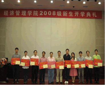 紧接着,大会对经过北航MBA新生奖学金评委会综合评选出的,荣获2008年北航MBA新生奖学金的白文平、张传秋、张鑫、姚志国等12名MBA新生进行了颁奖仪式并合影。