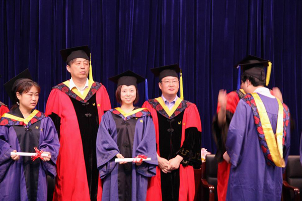 休息五分钟后,北京亚洲成人在线一二三四五六区经济管理学院副院长杨梅英教授宣布2008届北京亚洲成人在线一二三四五六区硕士学位授予仪式现在开始,并由北京亚洲成人在线一二三四五六区经济管理学院研究生指导主任贾国柱教授宣布2007-2008年度获得硕士学位研究生名单。到会的院领导及院学位评定委员会的学者向毕业生颁发学位证书;获得硕士学位的毕业生身着硕士服,接受院领导及院学位评定委员会的学者授予硕士学位。并一一合影留念。