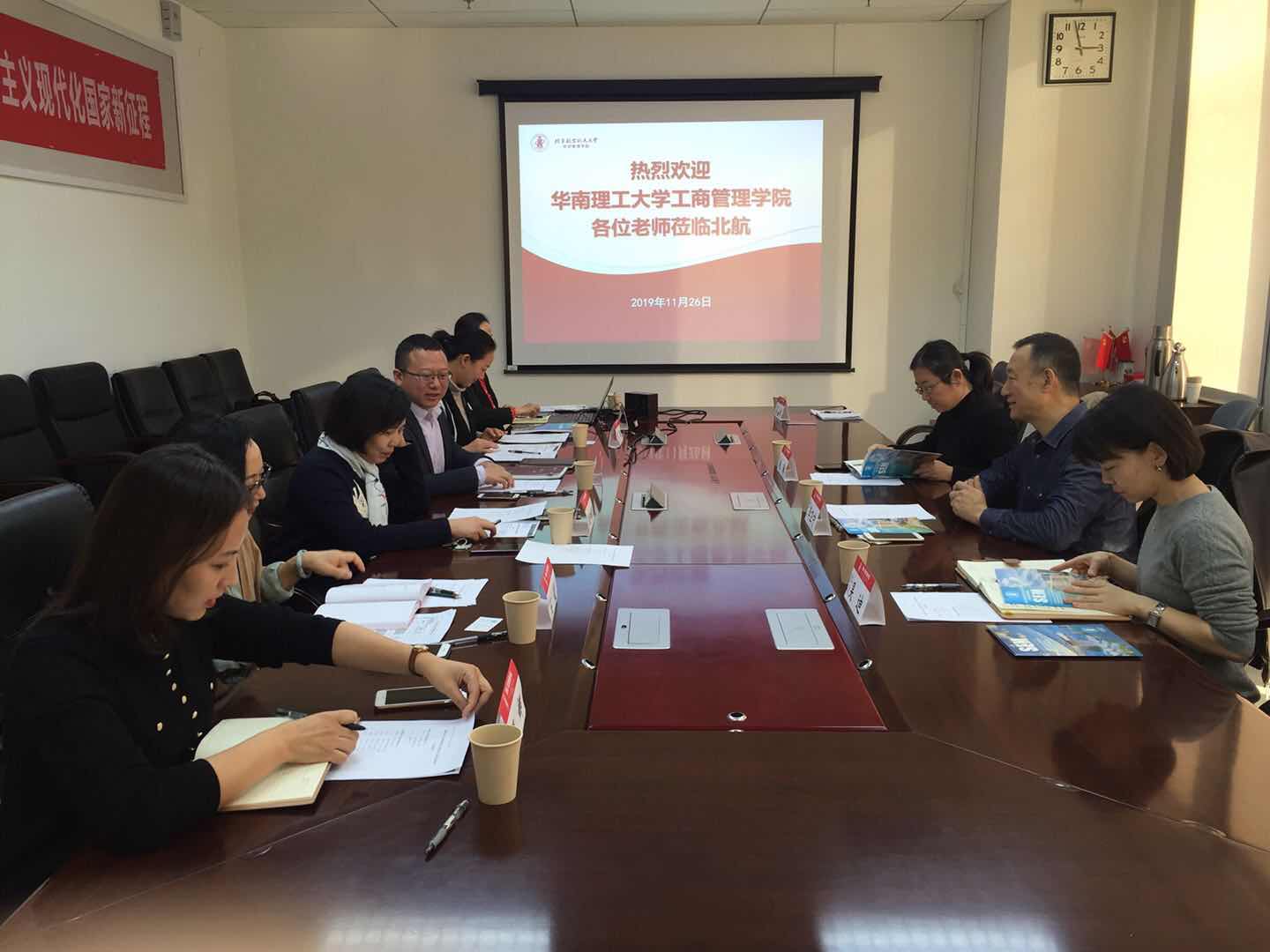 李亚帅主任对华南理工大学工商管理学院各位老师的到来表示欢迎,并简要介绍了北航MBA项目发展情况;石岚老师介绍了MBA课程教学与论文答辩管理情况;欧阳桃花教授介绍了案例教学与案例论文的撰写,提出论文要注重创新性,研究要来源于实践。与会人员围绕MBA课程设置、国际化建设、案例教学、招生、学生工作进行了深入讨论和交流。