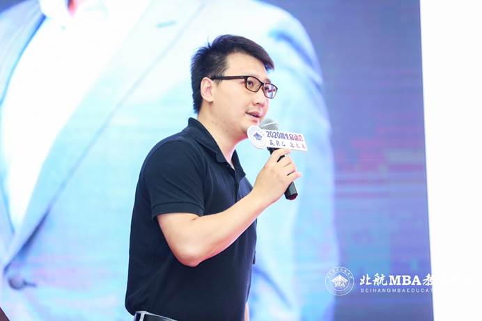 2018级在校生、中科曙光解决方案中心副总经理齐磊以自己在北航的学习、生活以及参加活动的经历与大家进行了分享。他表示,北航是他一直以来的梦想,这里有强大的师资、严谨的氛围、丰富的活动、可爱的同学、紧张的课业和优秀的团队。北航MBA是学业生涯新起点,不仅要得到学历、知识和资源的提升,更要学会沟通、善于倾听并赢得尊重。齐磊引用艾略特的一句话,“我们必不可停止探索,而一切探索的尽头,就是重回起点,并首次对起点有真正的了解”,来激励大家“改变自己,要有野心和决心”。最后齐磊分享了自己的备考经历并祝大家梦圆北航。