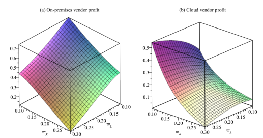 该成果考虑了云计算服务和本地软件产品使用过程中产生的安全外部性及由黑客攻击导致的用户的安全损失,对高安全损失和低安全损失两种环境下提供商的产品定价和投资决策以及顾客的购买行为进行了深入地探讨。在高安全损失环境中,如有黑客攻击,用户会遭受到与业务、声誉和敏感信息等相关的重大损失。一个很好的例子是企业软件,例如ERP、CRM等软件。相对应地,低安全损失环境中,用户受到安全攻击遭受的损失比较低,比如使用媒体播放器软件、游戏应用、办公应用等软件。